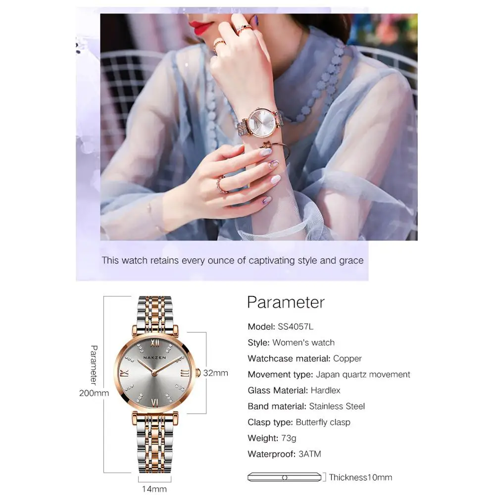 Free shipping NAKZEN Women's Watches Quartz Watches Waterproof Female Sports Watches with Rhinestones Luxury Bran